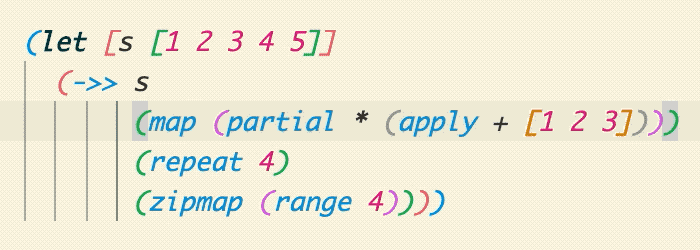 When dragging forms inside maps and binding boxes, such as with let, for, binding, etcetera, it often makes most sense to drag each binding as a pair. And this is what Calva will do. Like so: